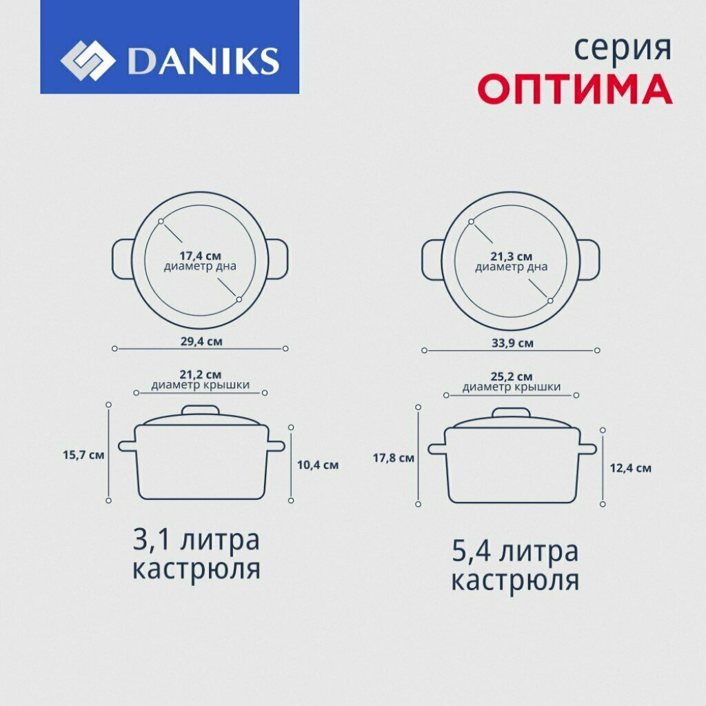 | Комплектация | 2 кастрюли 3.1 л, 5.4 л; ковш 1.6 л; крышка (3 шт) |