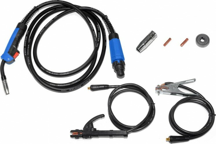 | Комплектация | Инверторный сварочный аппарат, кабель с клеммой заземления 1,4 м, кабель с электрододержателем 1,6м м, сварочная горелка MIG-15AK-4м, ролик для проволоки 0,6/0,8 мм и 0,8/1,0 мм, набор аксессуаров для горелки, кабель переключения полярности, руководство по эксплуатации, гарантийный талон |