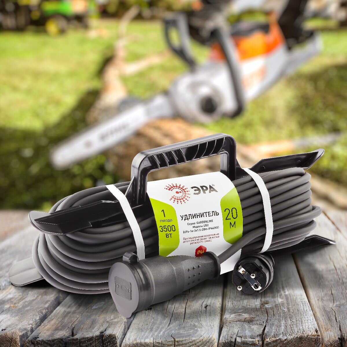 Силовой удлинитель ЭРА UFx-1e-3x1,5-20m-IP44 KG на рамке с/з 1 розетка 20 м КГ 3х1,5 Б0050868 .