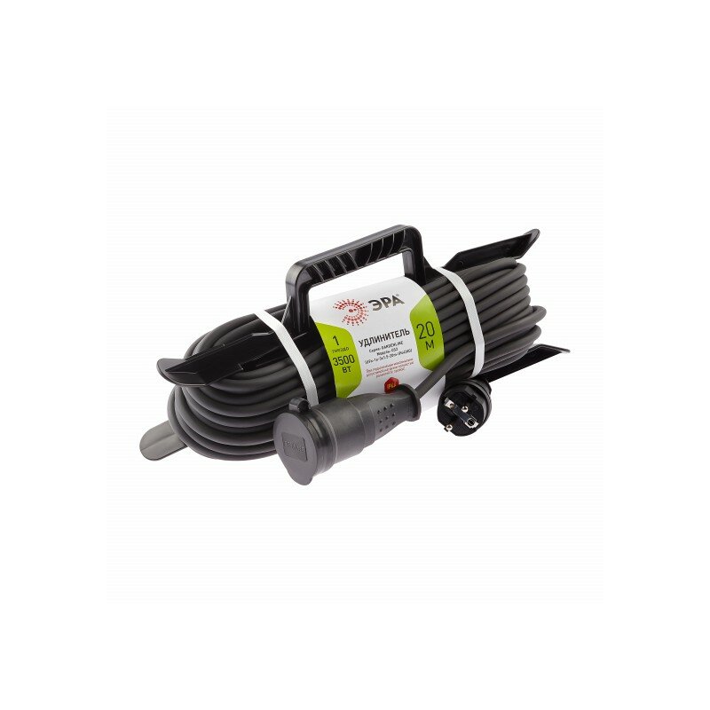 Удлинитель силовой Эра UFx-1e-3x1,5-20m-IP44(KG), розеток 1шт, 3x1.5 кв.мм, 16A, 20м, КГ, рамка пластиковая, черный [б0050868]