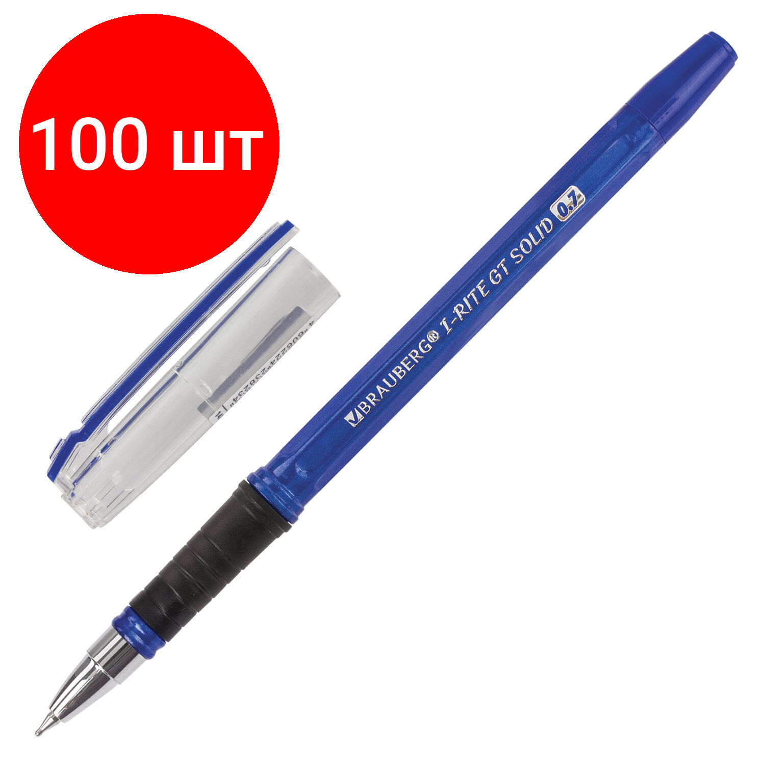 Комплект 100 шт, Ручка шариковая масляная с грипом BRAUBERG "i-Rite GT Solid", синяя, корпус синий, узел 0.7 мм, 143305 интересное: