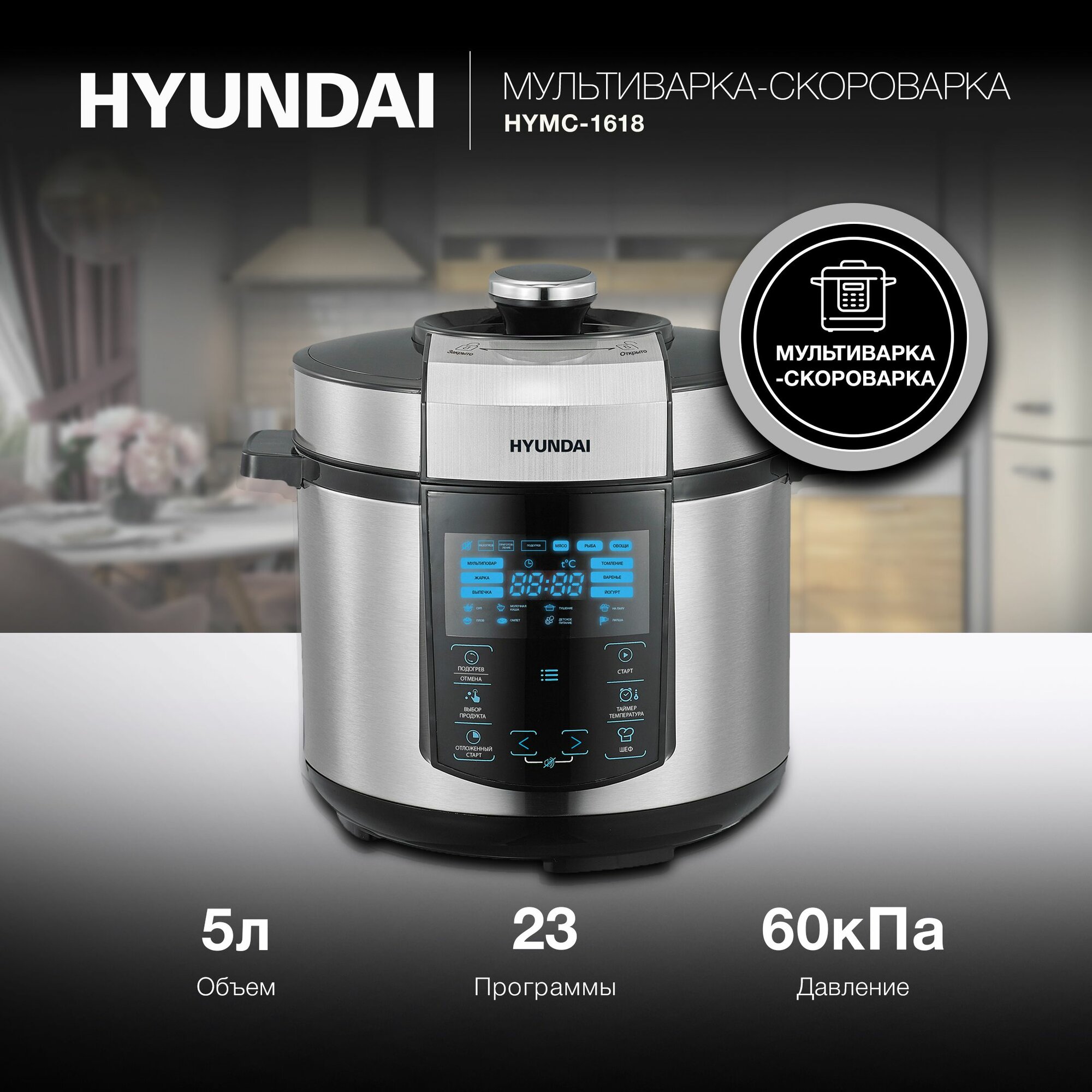 Мультиварка-скороварка Hyundai HYMC-1618, 1000Вт, серебристый/черный интересное: