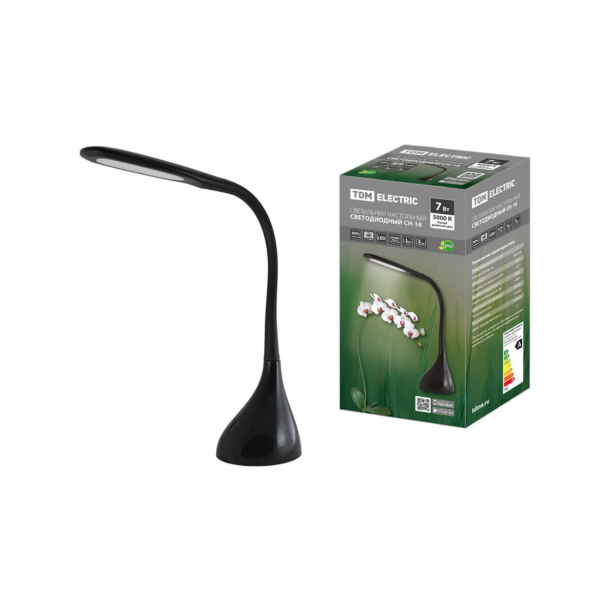 Светильник настольный LED, 7 Вт, черный, TDM Electric, СН-16, SQ0337-0093