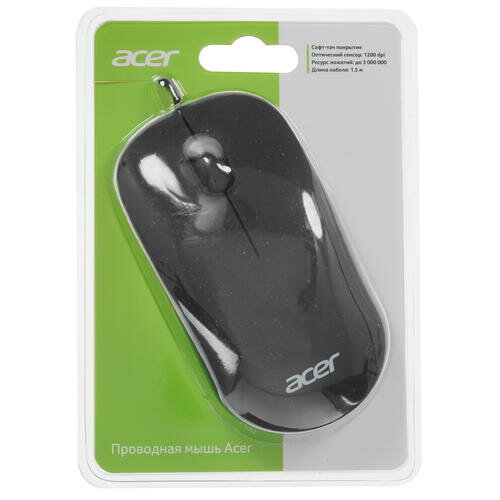 Мышь Acer OMW122 Black оптическая, проводная, 1200 dpi, USB, цвет: чёрный
