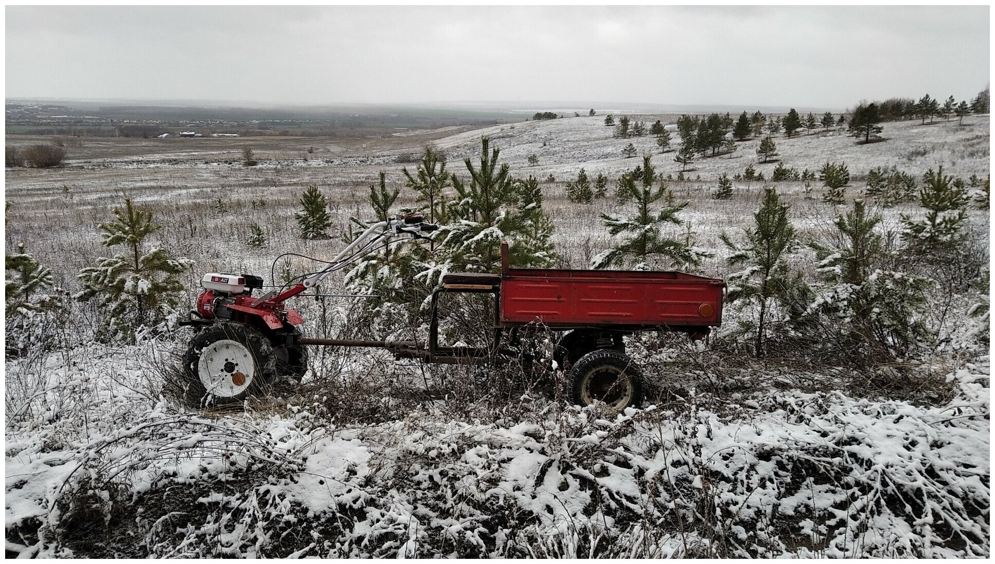 | Отзыв: | Двигатель запускается с первого раза, работает ровно, самодельный прицеп из мотороллера муравей тянет на ура, навозил на нем перегной на огород и неглубоко закультивировал, фрезы собрал за полчаса, прицеп за 2 часа. Навесное оборудование покупать не буду, если что надо можно и смастерить, покупал в основном для телеги и культивации, 7л.с. мне вполне хватает, слышал что на мощных моторах, особенно дизелях коробки передач на долго не хватает, да и расход больше. Дополняю, отвалилось колесо на ходу, за 7 км от дома, хорошо сосед был дома и приехал за мной, не отъезжайте далеко от дома пока все не проварите, без навыков сварочных работ лучше не приобретать дешёвый мотоблок. |