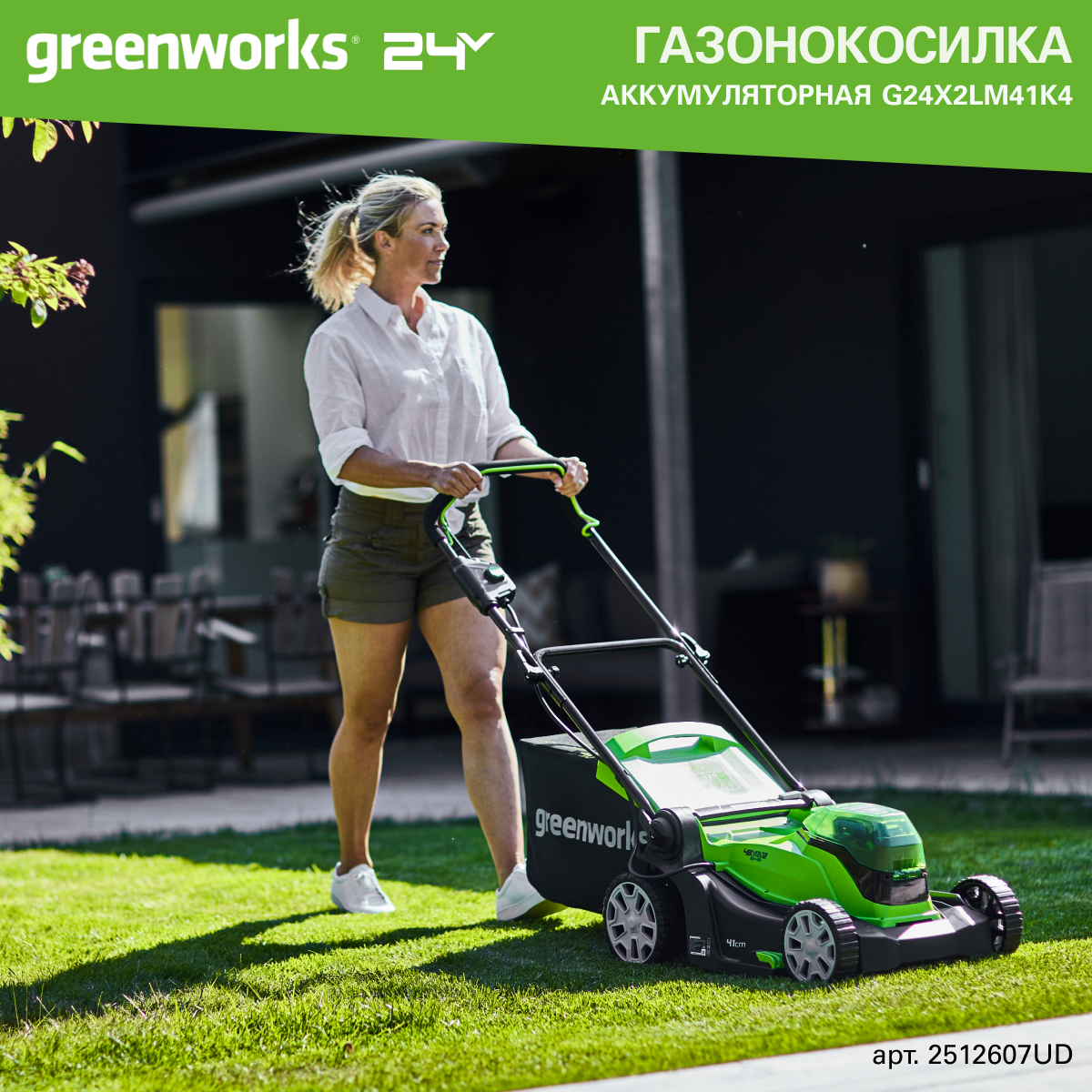 Газонокосилка аккумуляторная Greenworks G24X2LM41, 24В (2 АКБ 4 Ач и ЗУ)