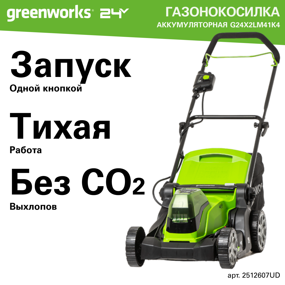 Газонокосилка аккумуляторная Greenworks G24X2LM41, 2*24V, 41 см, с АКБ и ЗУ