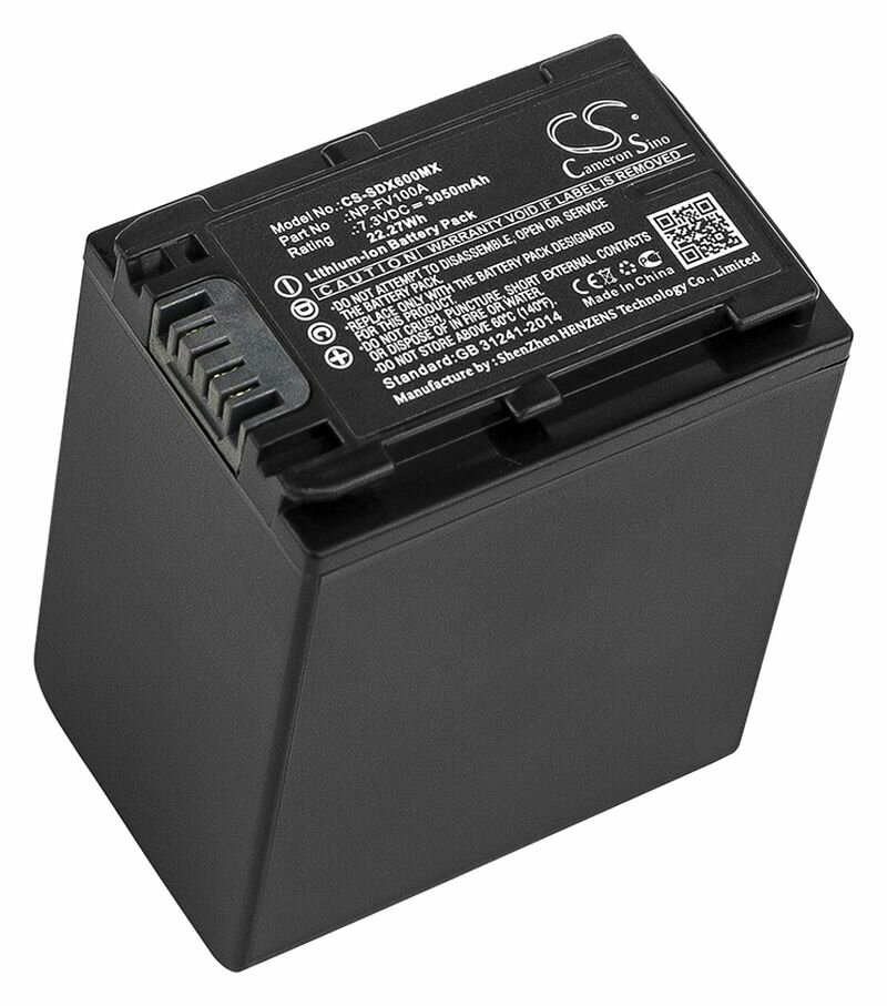 Аккумулятор CameronSino CS-SDX600MX для видеокамеры Sony FDR-AX33, FDR-AX40, FDR-AX45 (NP-FV100A) 3050mAh