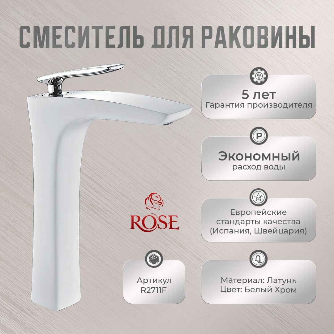 Rose Смеситель для раковины высокий Rose R27F R2711F, белый/хром