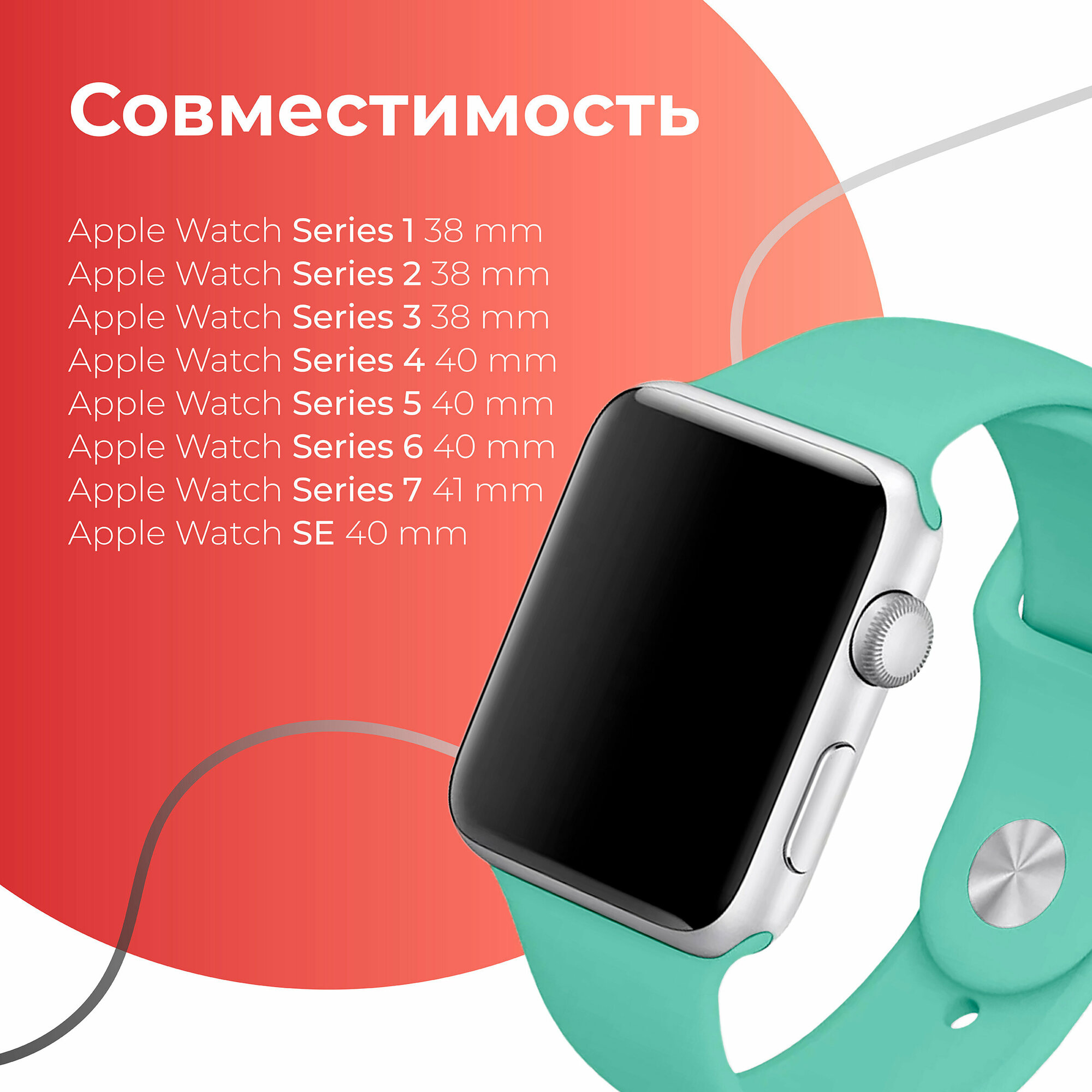 | Совместимость | Apple Watch 38 мм / Apple Watch 40 мм / Apple Watch 41 мм / Apple Watch SE / Apple Watch Series 1 / Apple Watch Series 2 / Apple Watch Series 3 / Apple Watch Series 5 / Apple Watch Series 6 / Apple Watch Series 7 |