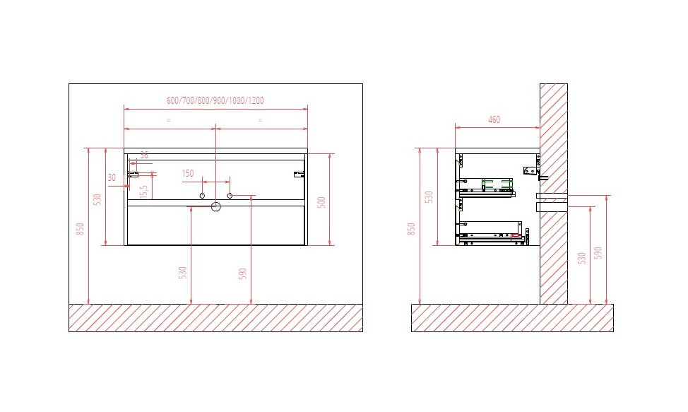 BelBagno База подвесная с двумя выкатными ящиками BelBagno KRAFT-600-2C-SO-BO