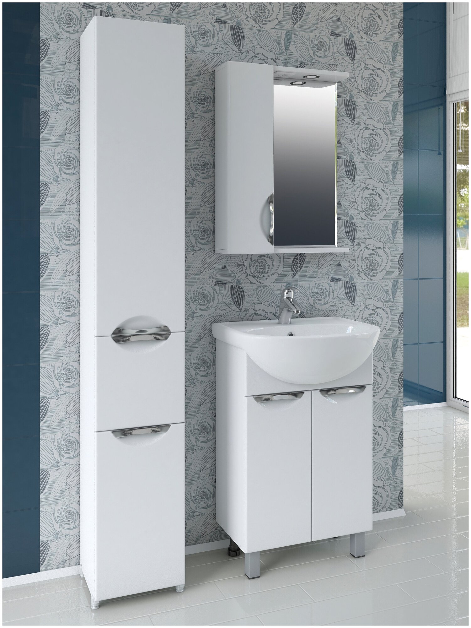 Тумба под раковину в ванную Flamenco, Фламенко 504, белая, 47 х 28.2 x 81 см мебель для ванной