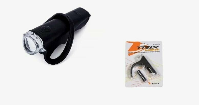 Фара Trix передняя, 1 суперъяркий диод, 2 режима, крепеж на руль, батарейки в комплекте, силикон .