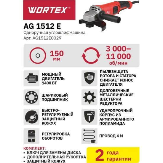 Wortex Шлифмашина угловая болгарка AG 1512 E AG1512E0029 .