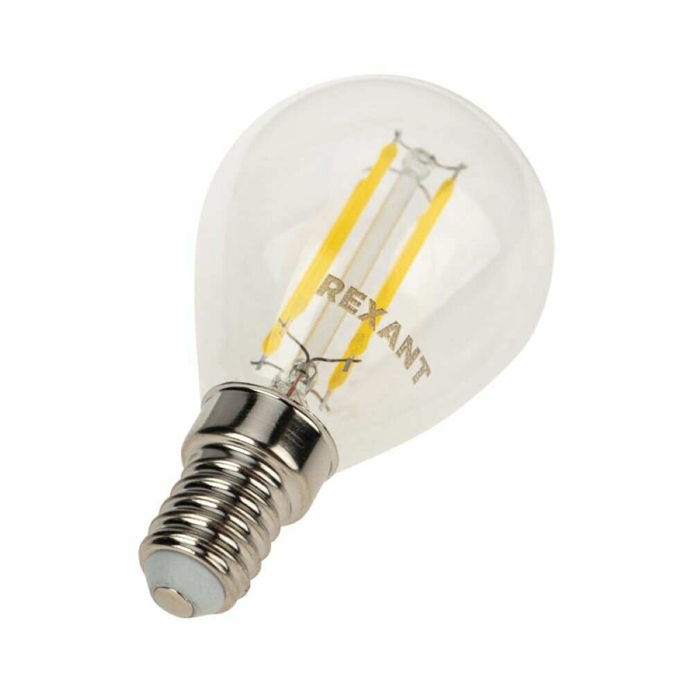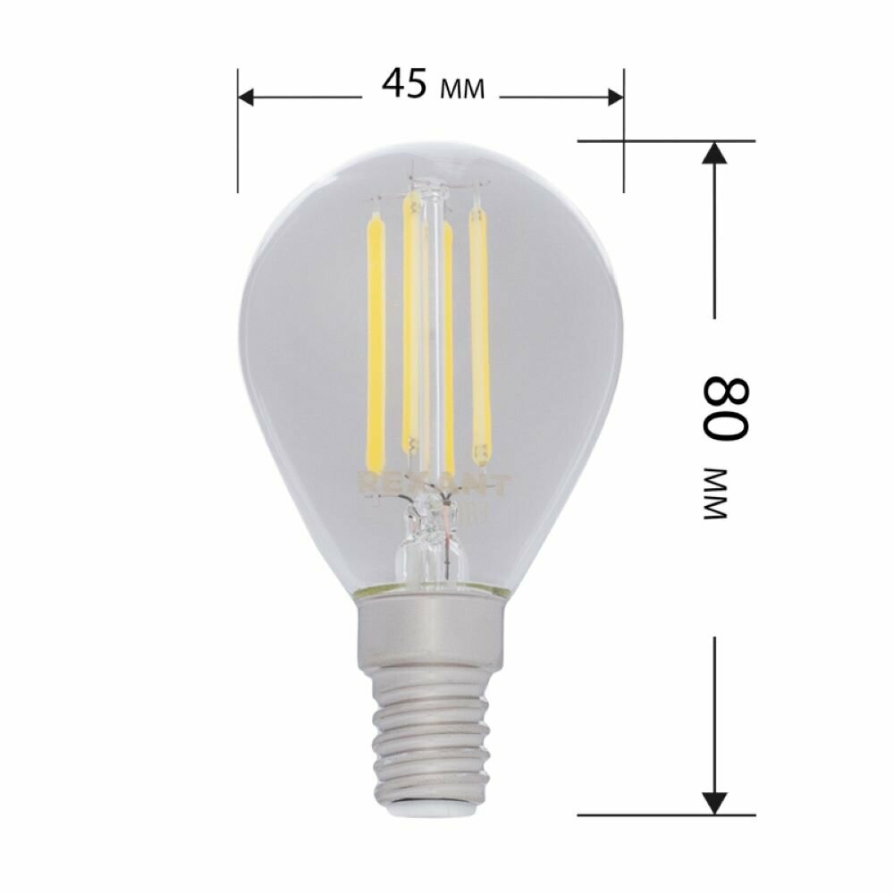 Лампа Rexant 604-126 филаментная шарик GL45 7.5 Вт 600 Лм 4000K E14 диммируемая, прозрачная колба