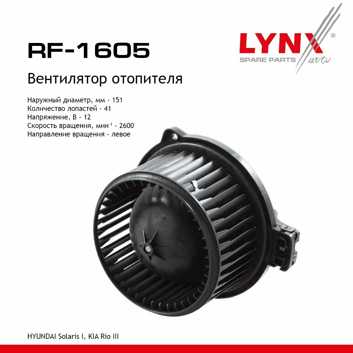 Вентилятор отопителя HYUNDAI Solaris I 10>, KIA Rio III 11> (RF-1605 LYNXauto) - LYNXauto арт. RF-1605