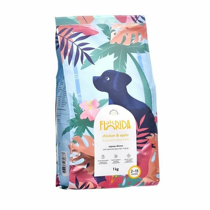 FLORIDA Сухой корм для щенков крупных пород с курицей и яблоком 12+2кг интересное: