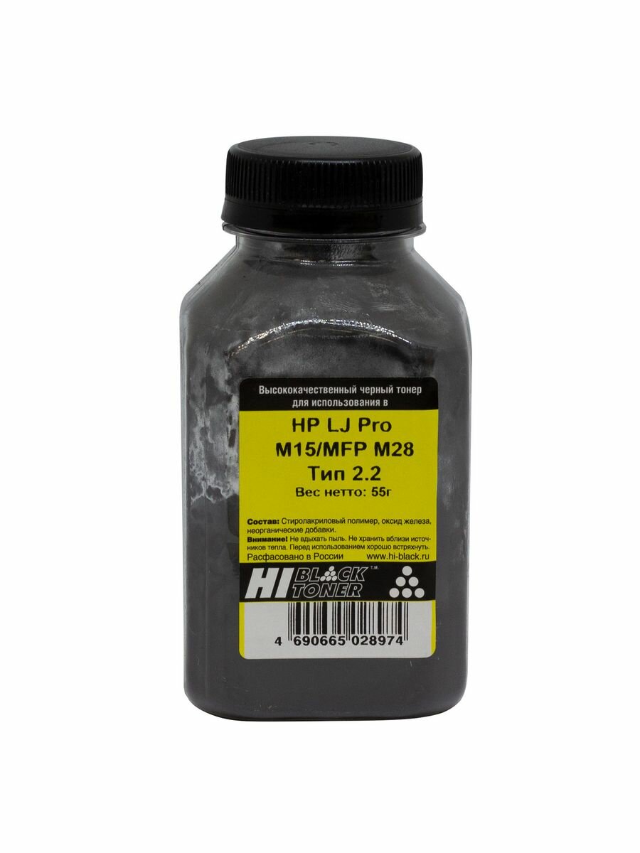 Тонер Hi-Black для HP LJ Pro M15/MFP M28, Тип 2.2, Bk, 55 г, банка, черный