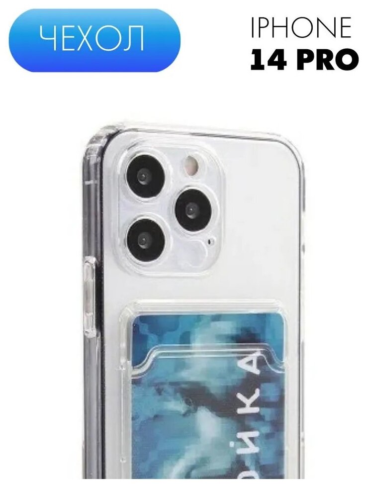 СохранитьПрозрачный чехол №05 для Apple iPhone 14 Pro / противоударный силиконовый бампер клип-кейс с карманом для карты и защитой углов на Эпл Айфон 14 Про интересное:
