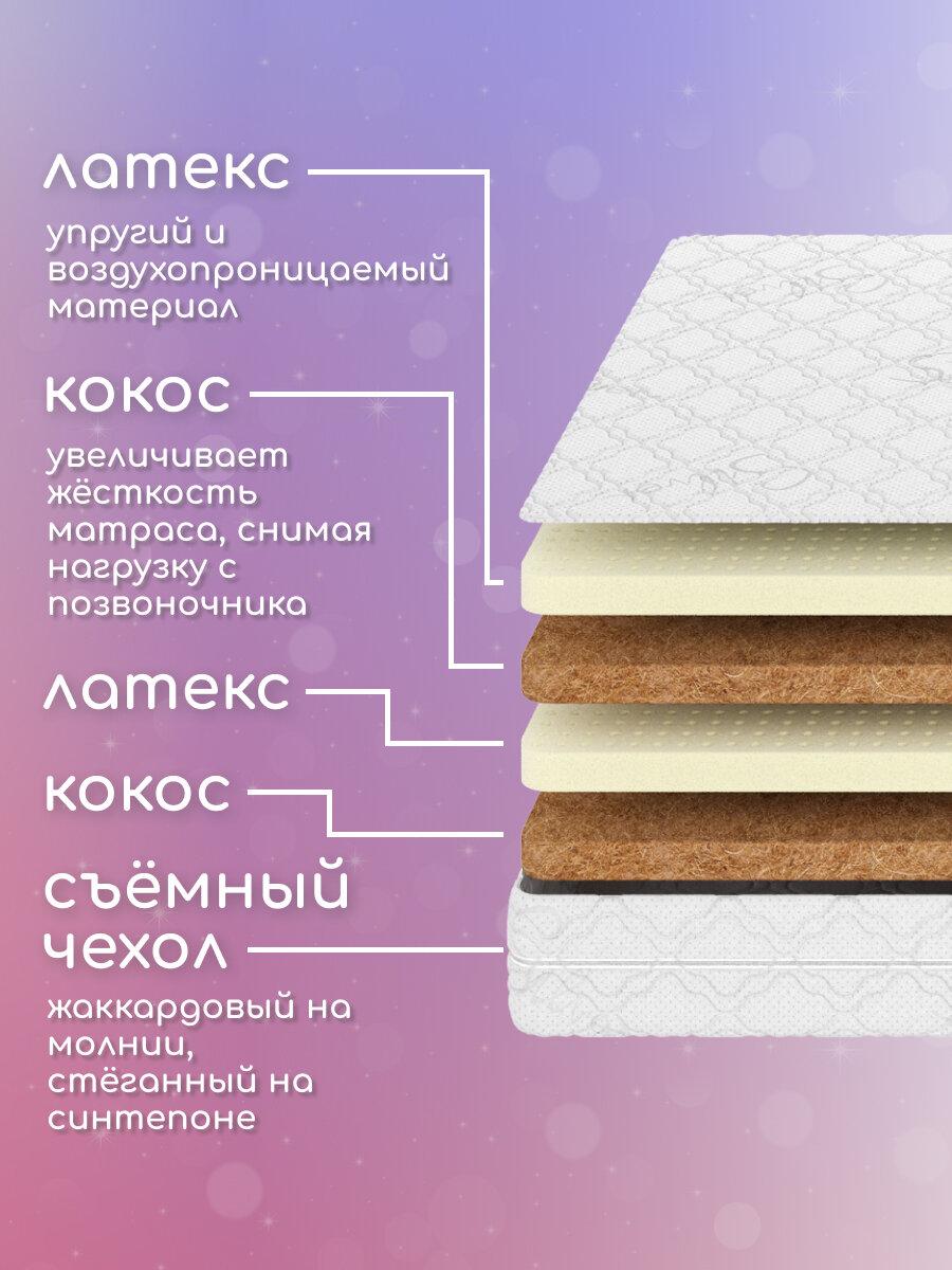 Матрас Капризун "Джангл Лакки", беспружинный, кокос/латекс, съемный чехол, 200х100х12 см