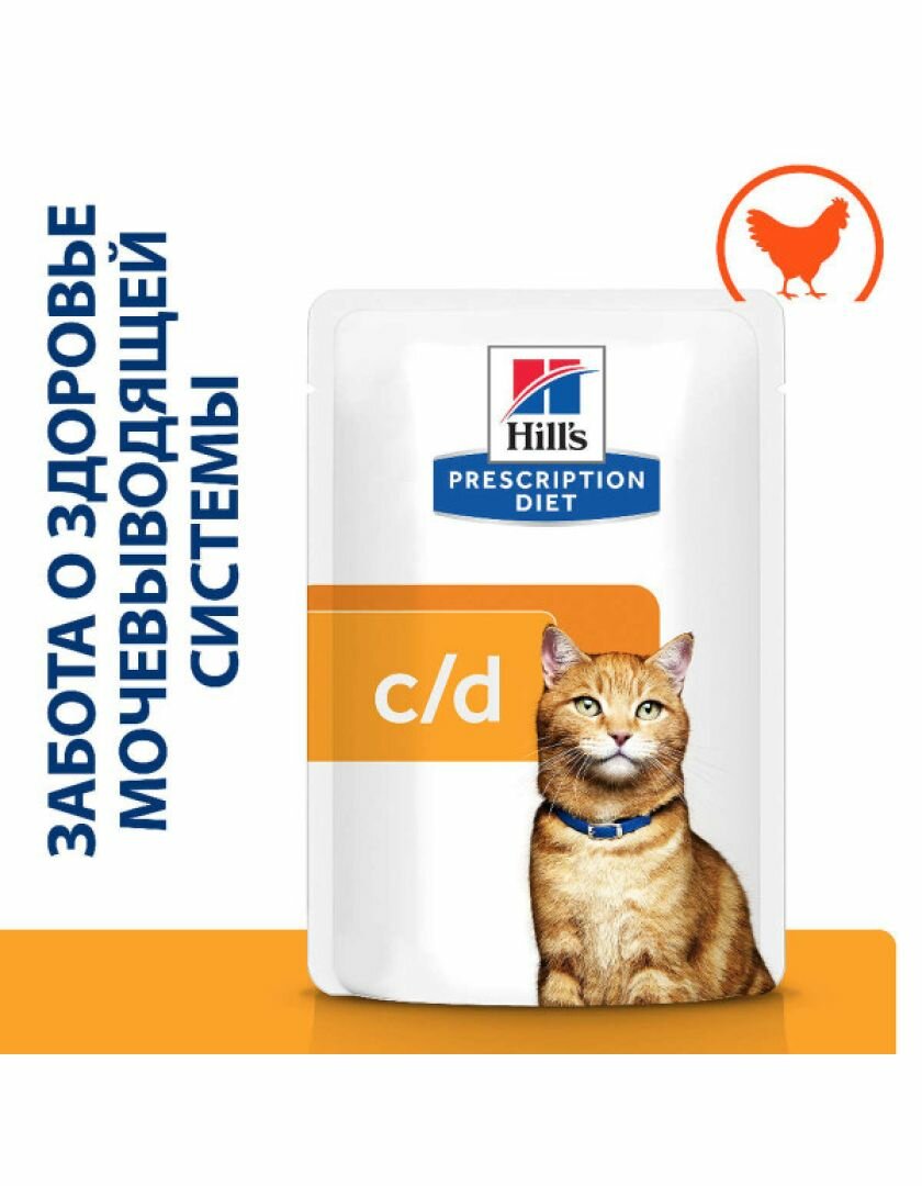Hill's Prescription Diet Feline C/D влажный корм Паучи для кошек при лечении МКБ (Курица в соусе) 12х85гр