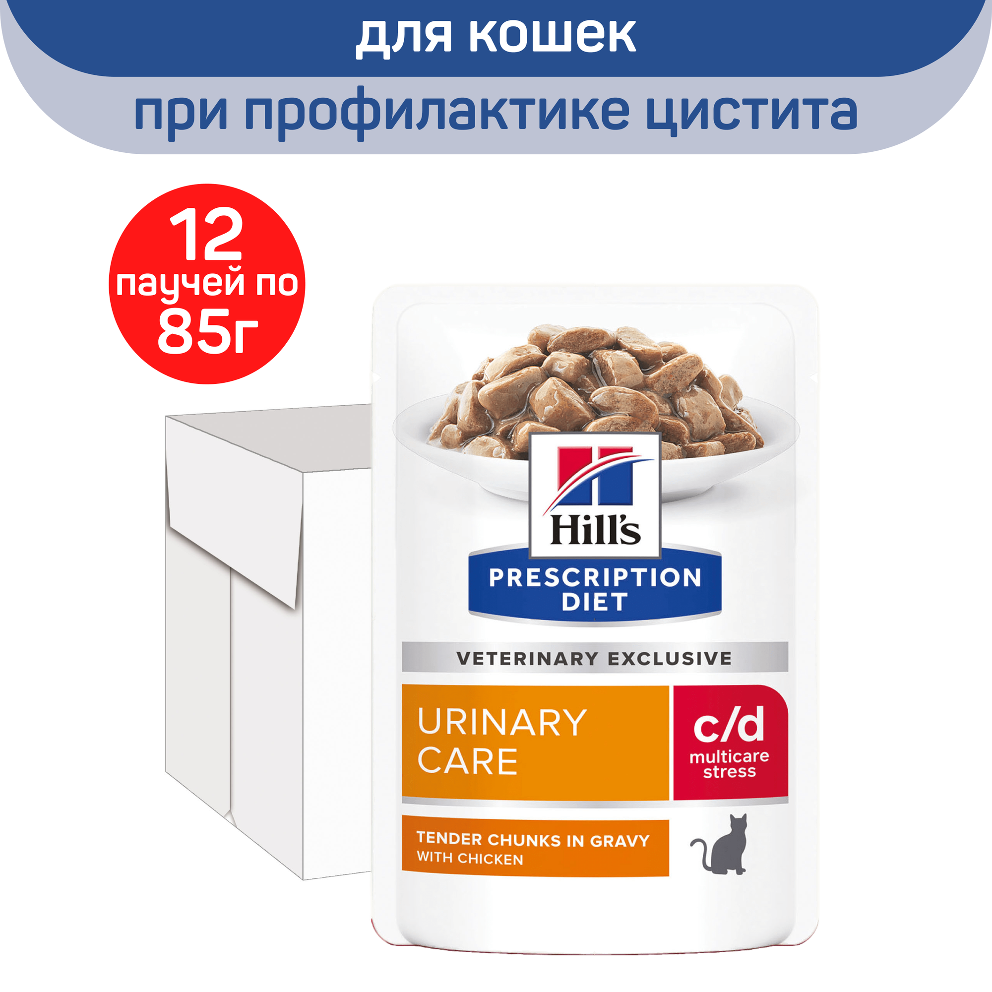 Корм для кошек Hills Hill's Prescription Diet C/D Feline Urinary Stress with Chicken in Gravy профилактики цистита при стрессе и урологическом синдроме, Курица 12шт.*85г