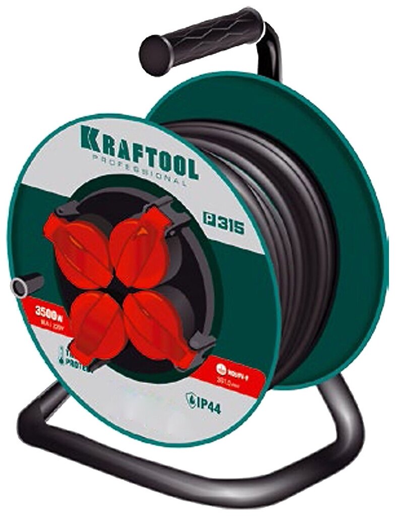 KRAFTOOL P-315 удлинитель на катушке, 30 м, 3500 Вт, 4 гнезда, IP44, ПВС 3x1,5 кв мм, KRAFTOOL ( 55084-30 )