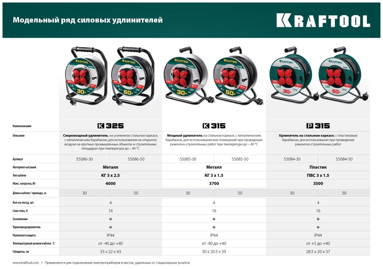 СохранитьKRAFTOOL P-315, ПВС 3х1.5 30м, 3500Вт IP44, Силовой удлинитель на катушке (55084-30) интересное: