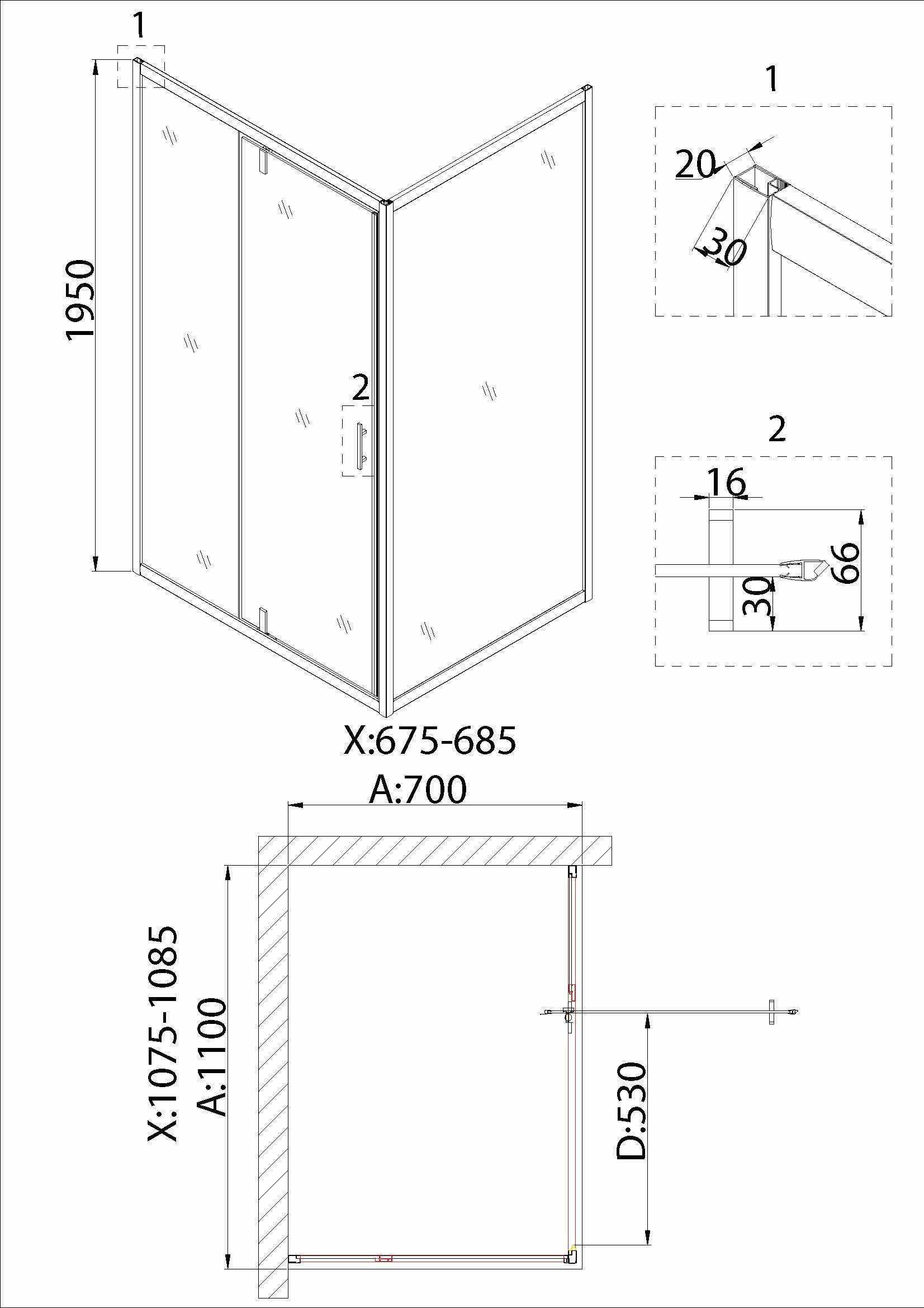 Душевое ограждение Niagara NG-83-11AB-A70B (110*70*190) прямоугольник, дверь распашная, 2 места