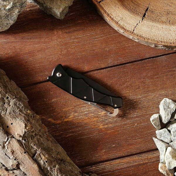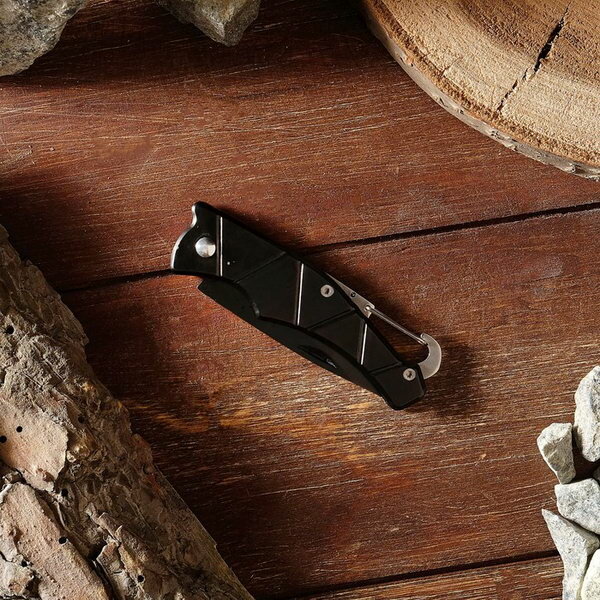 Нож складной "Разведчик" лезвие черное 6,4см, рукоять под черный металл, карабин, 15 см 2989518