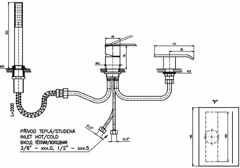 Rav Slezak Loira Смеситель для ванны на 3 отверстия переключатель в миксе LR568.5Y душевой шланг с пружиной 2м цвет хром (LR574.5Y)