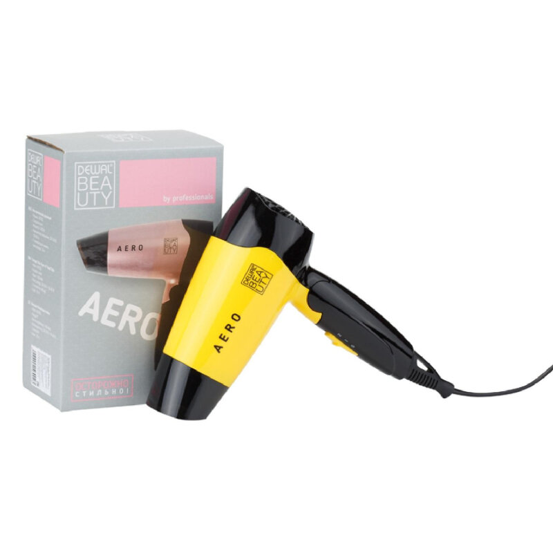 Фен DEWAL BEAUTY Aero Yellow, дорожный, жёлтый, 1400 Вт, 1 насадка