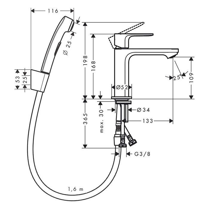 HG Rebris E Смеситель для раковины 110, с гигиеническим душем, цвет хром интересное: