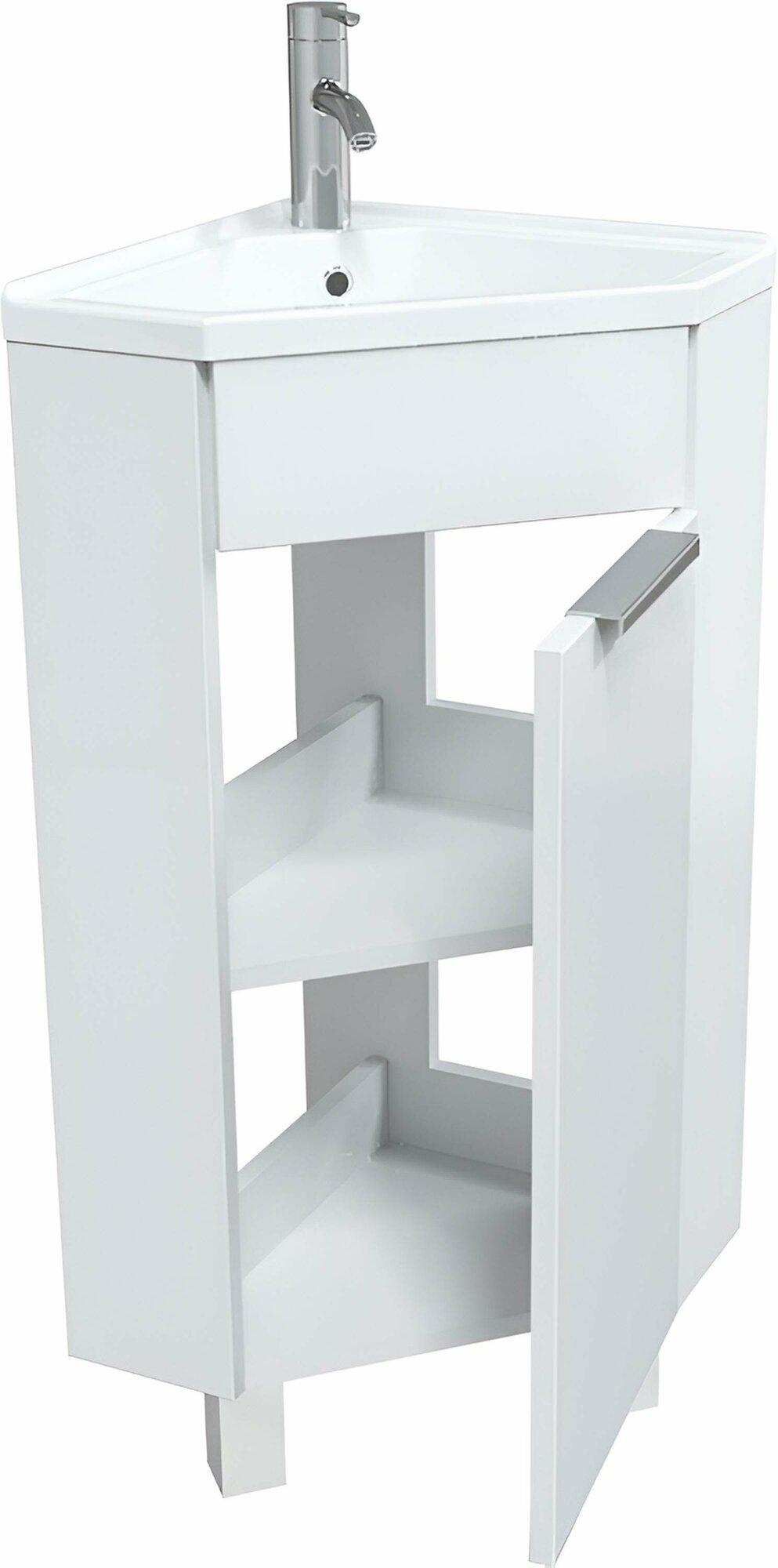 Купить Тумба с раковиной в ванную 1Marka Penta 37х37 см напольная, угловая, 1 дверца, цвет Белый глянец Ц0000001635
