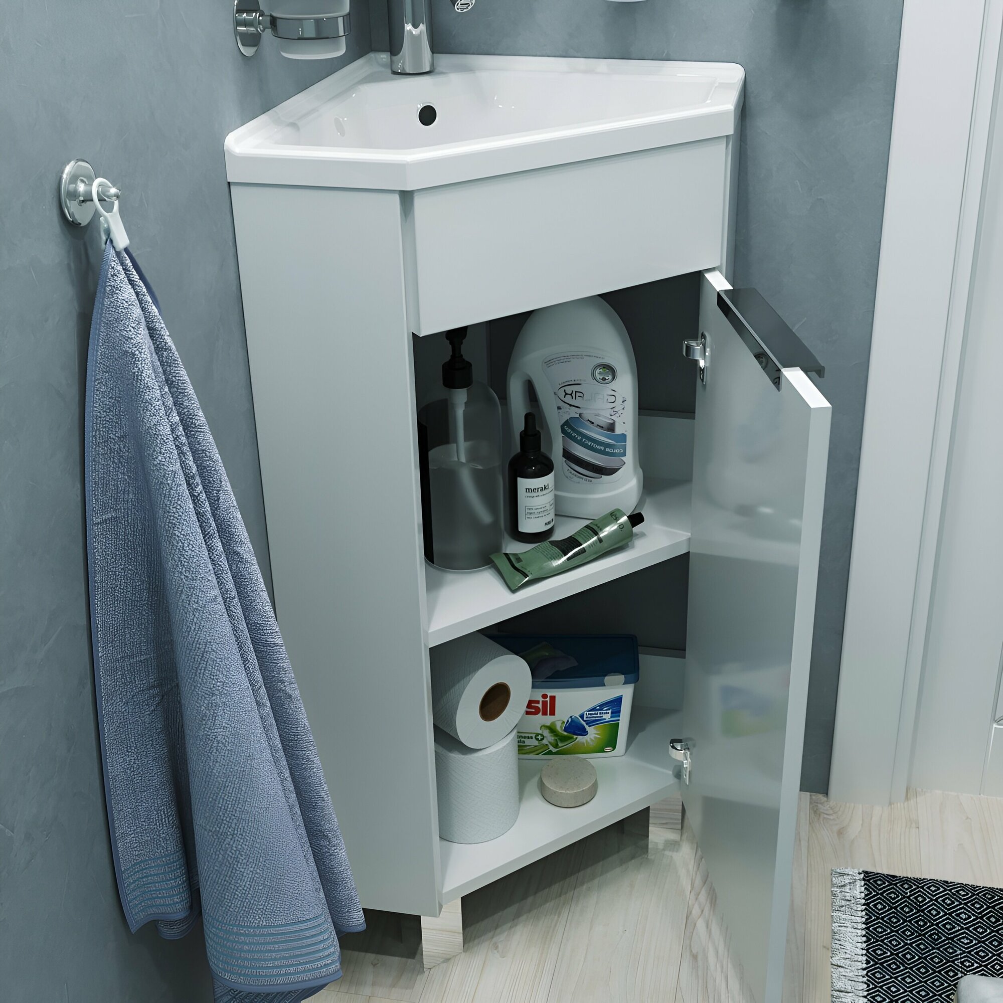 Тумба с раковиной в ванную 1Marka Penta 37х37 см напольная, угловая, 1 дверца, цвет Белый глянец Ц0000001635 интересное:
