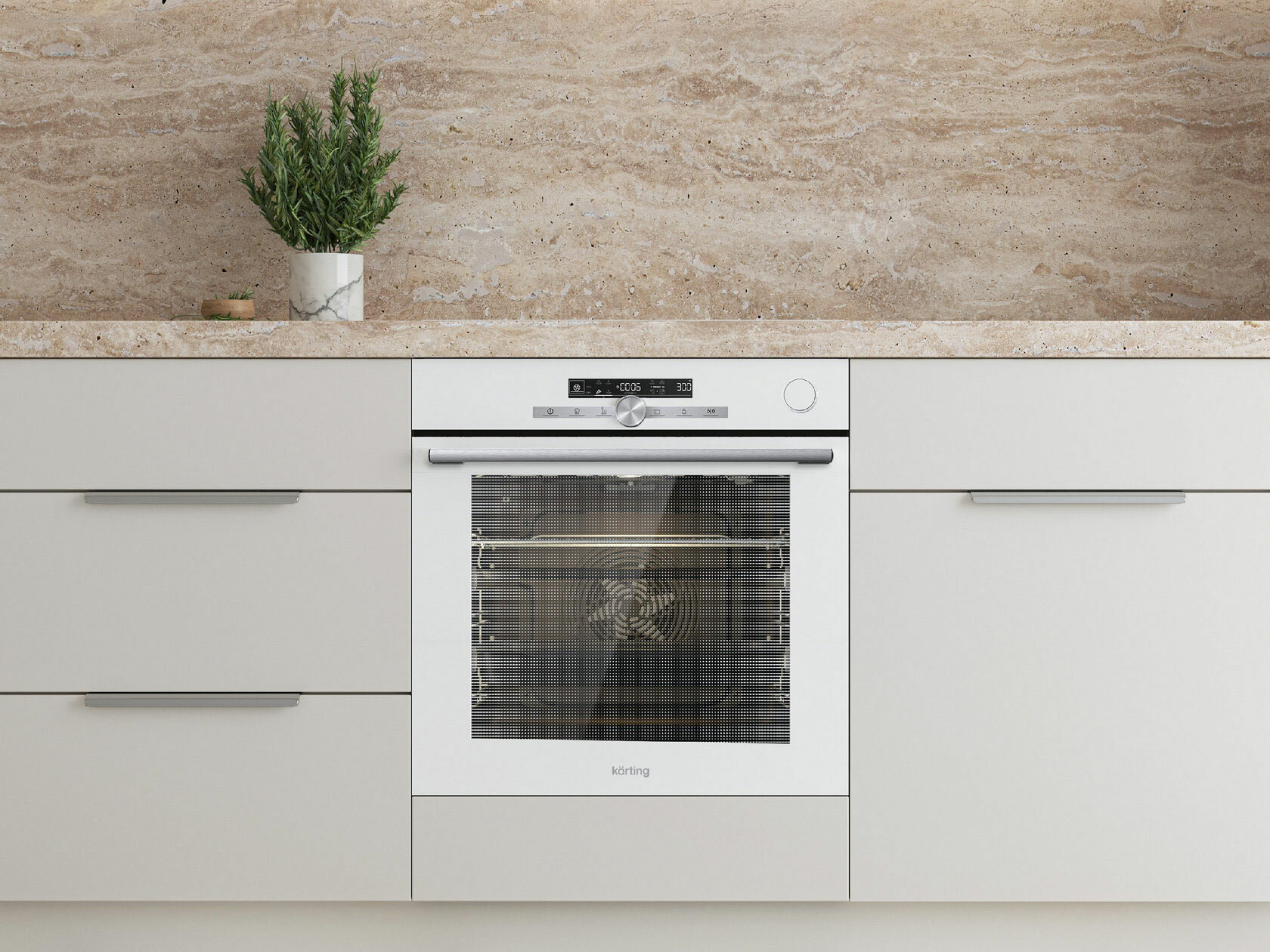 Встраиваемая газовая духовка Korting Встраиваемый 60 см, Motion, 77 л, 12 режимов, очистка паром, белый цвет