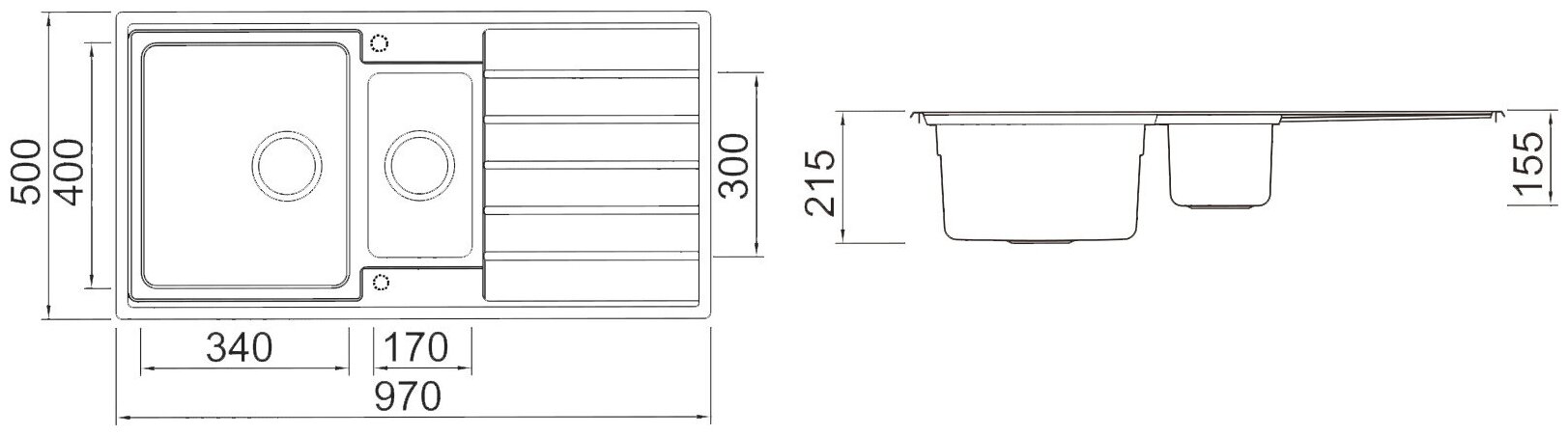 Мойка Seaman Eco Roma SMR-9750B, без отверстий, стандартная комплектация, две чаши-крыло, малая посередине