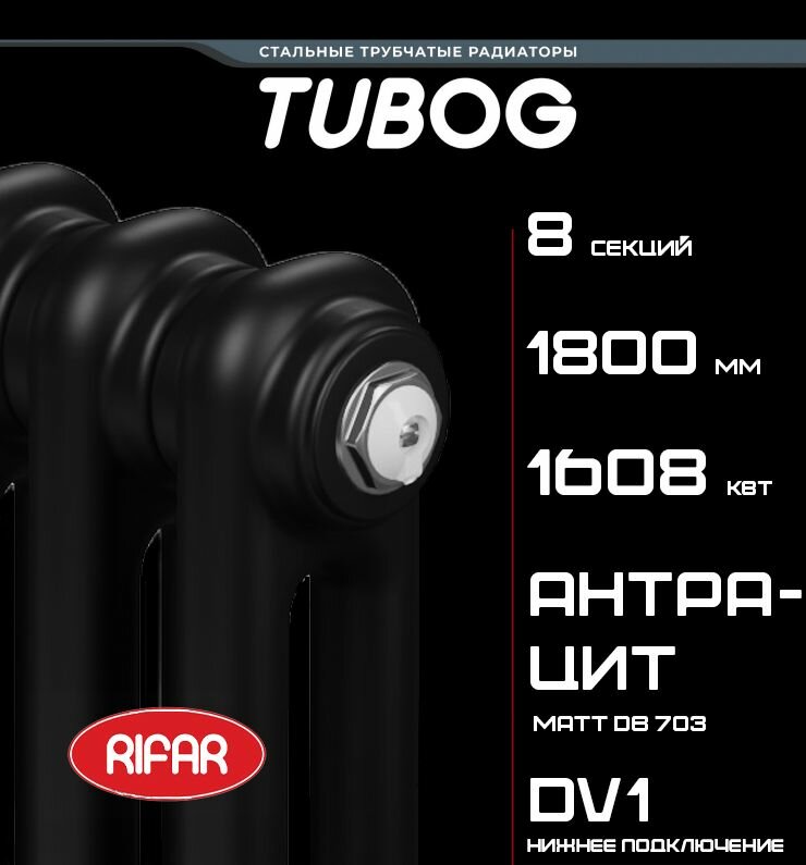 Купить RIFAR TUBOG 2180/8 радиатор трубчатый нижнее подключение DV1 (Антрацит)