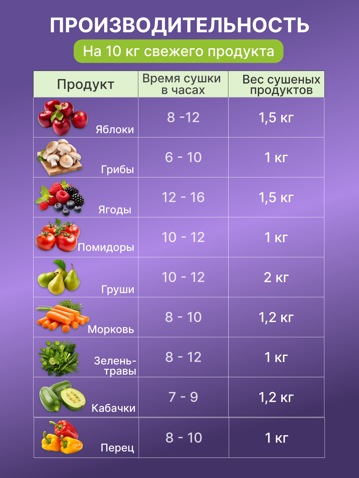 Сушилка (дегидратор) для овощей, фруктов, мяса, рыбы Ezidri Ultra FD1000 Digital (15 поддонов, 10 сеток и 10 листов для пастилы) интересное:
