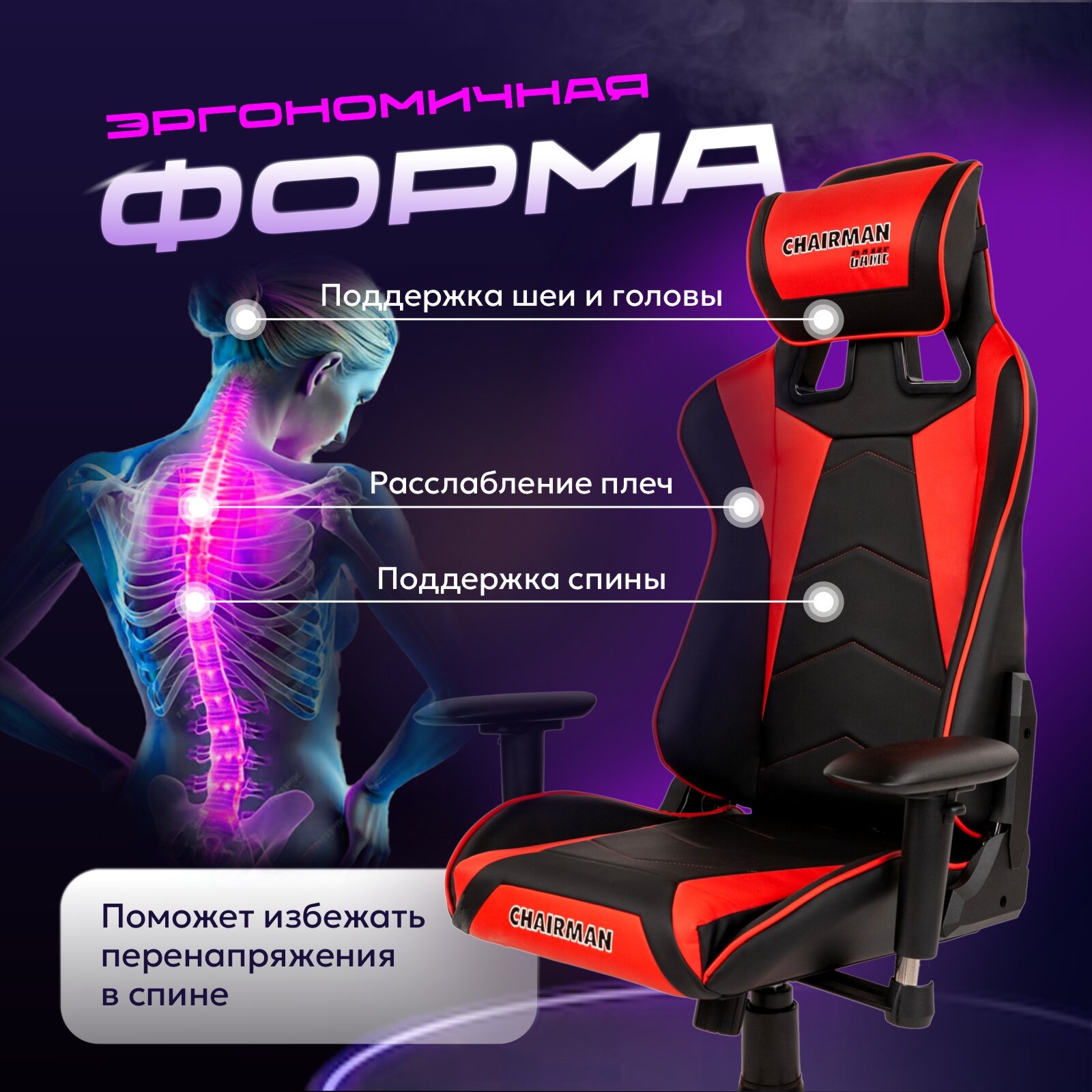 Купить Игровое компьютерное кресло с регулируемыми подлокотниками CHAIRMAN GAME 44, экокожа, черный/красный
