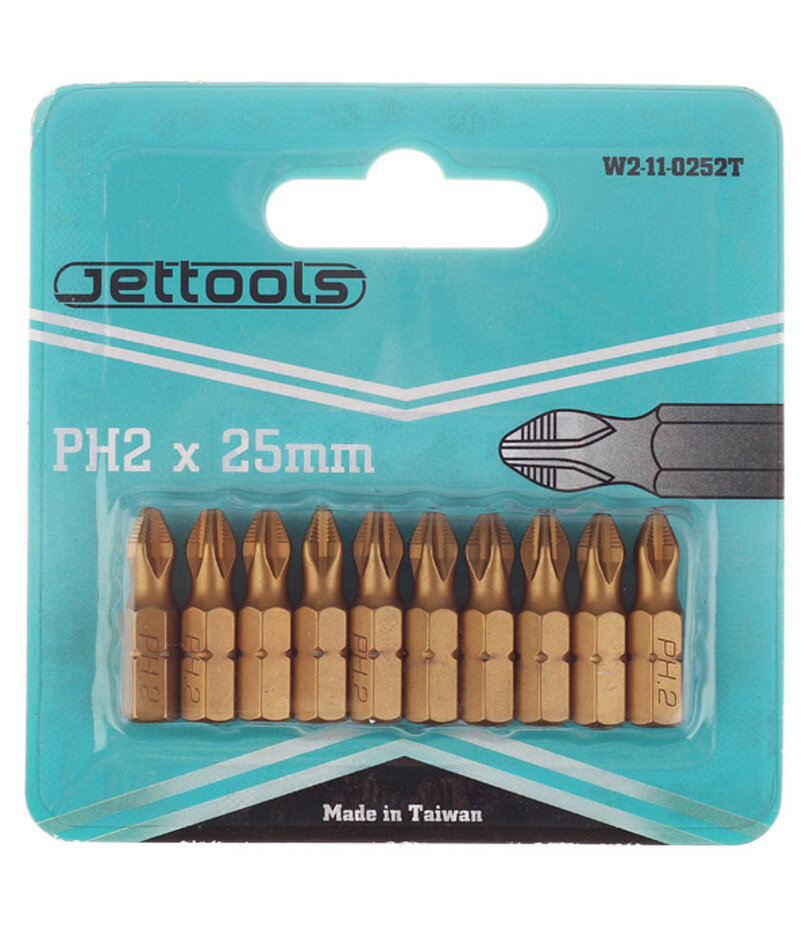 Купить Бита PH2 25 мм Jettools магнитные для шуруповерта для больших нагрузок, 10 штук