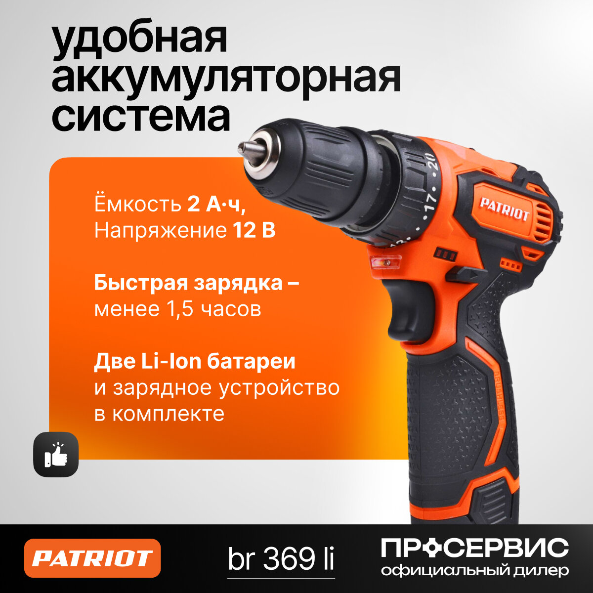 Купить Дрель- шуруповерт аккумуляторная PATRIOT BR 369Li, электроинструмент для ремонта и строительства