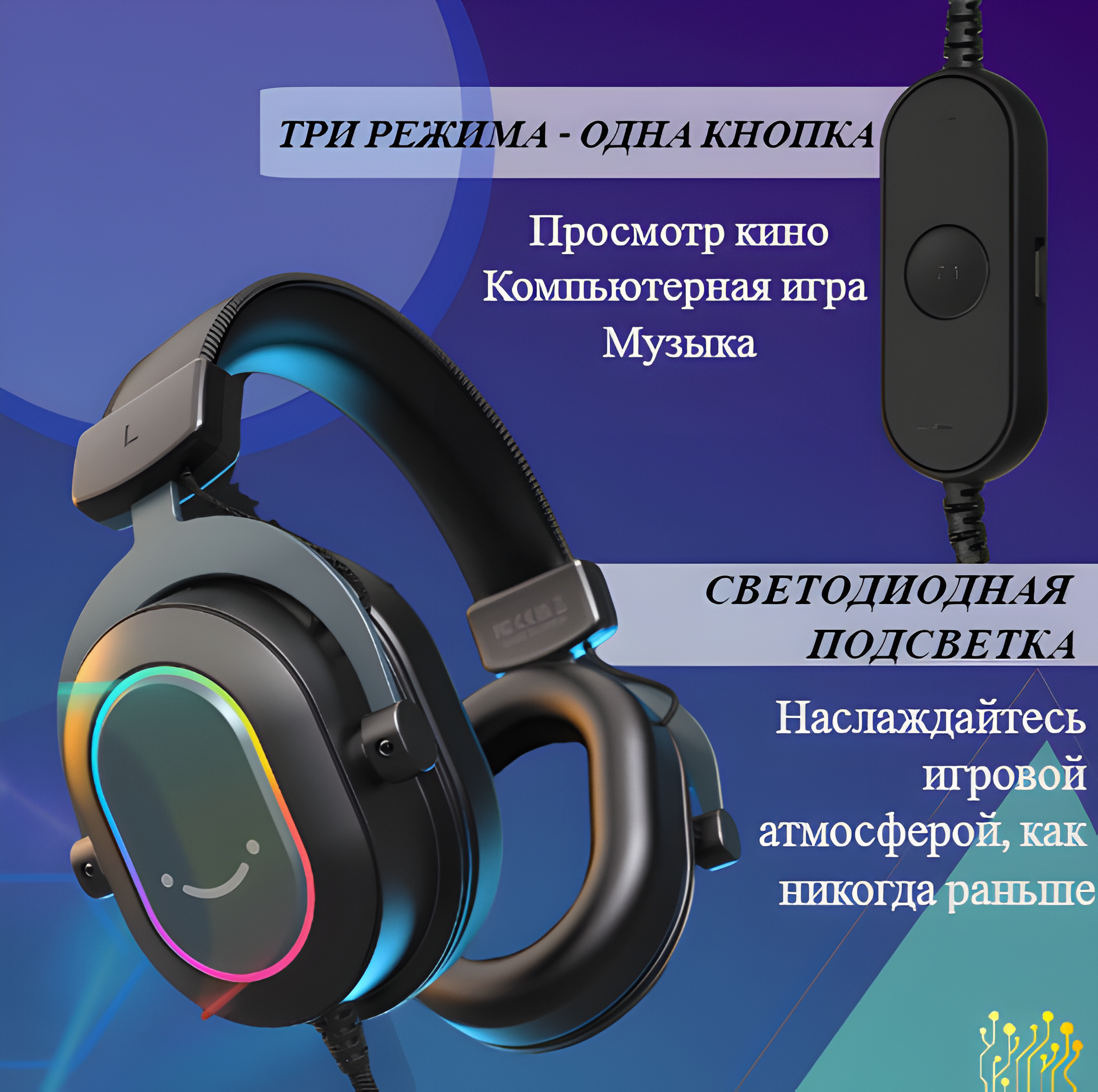 Проводная головная гарнитура / Игровая RGB-гарнитура / Проводные компьютерные наушники