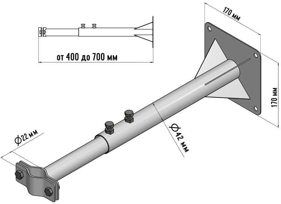 Кронштейн телескопический для крепления антенны мачты, вылет от стены 40-70 см