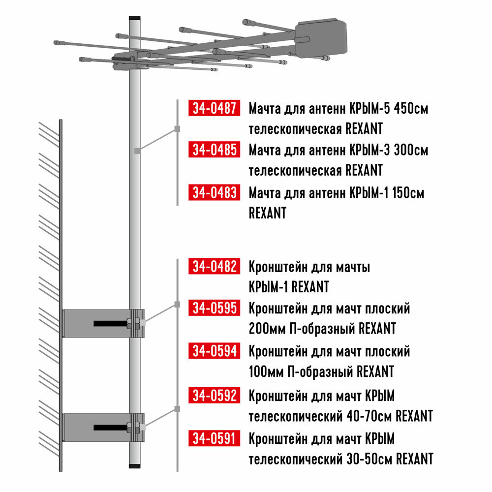 Кронштейн для мачт REXANT крым телескопический 40-70см 34-0592 интересное: