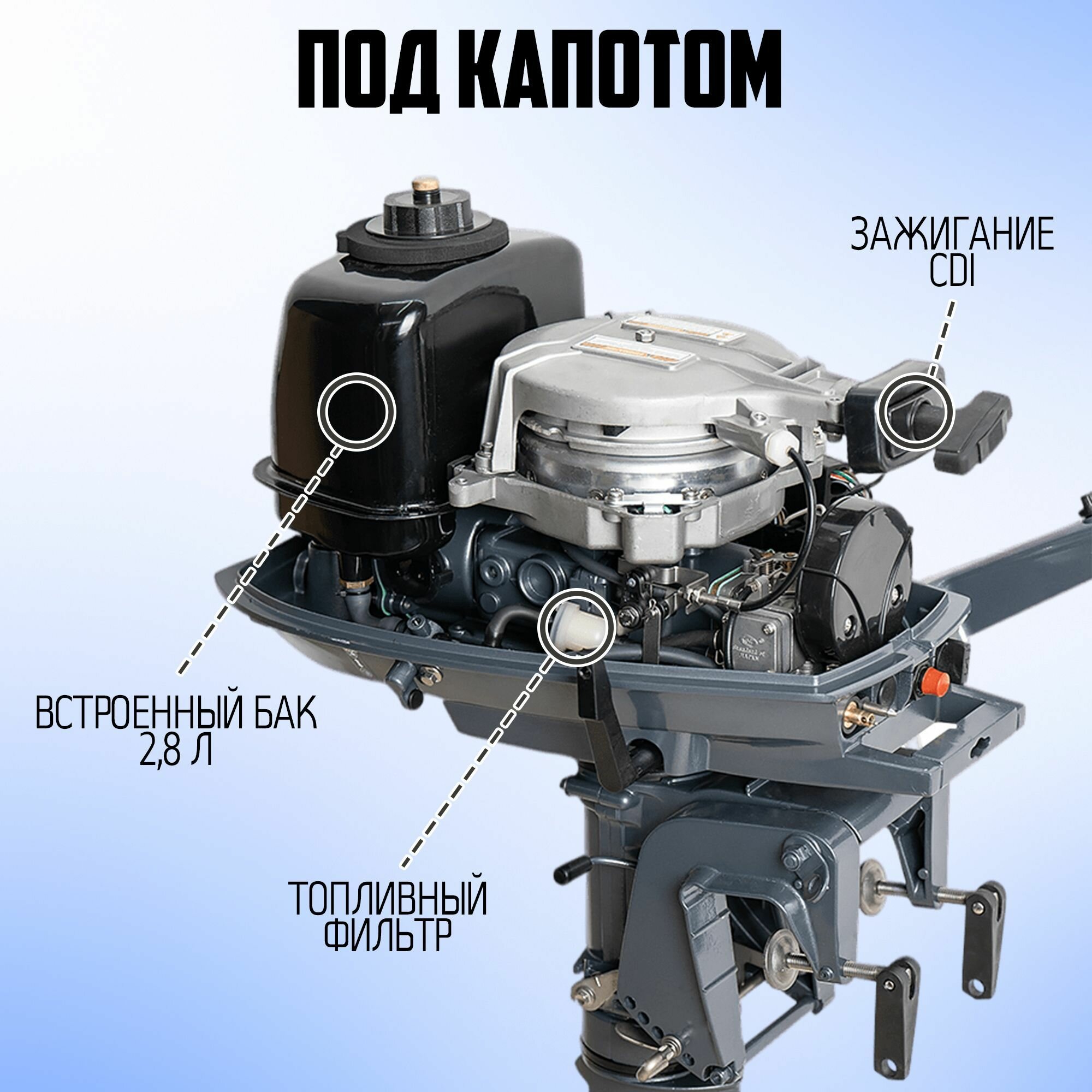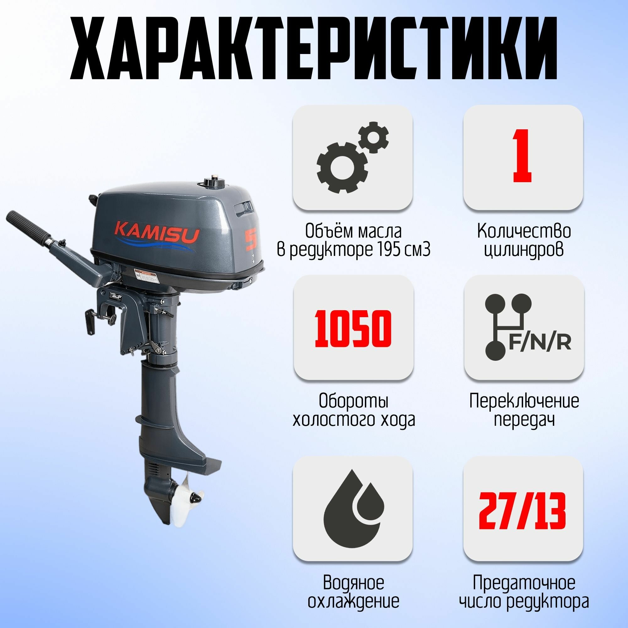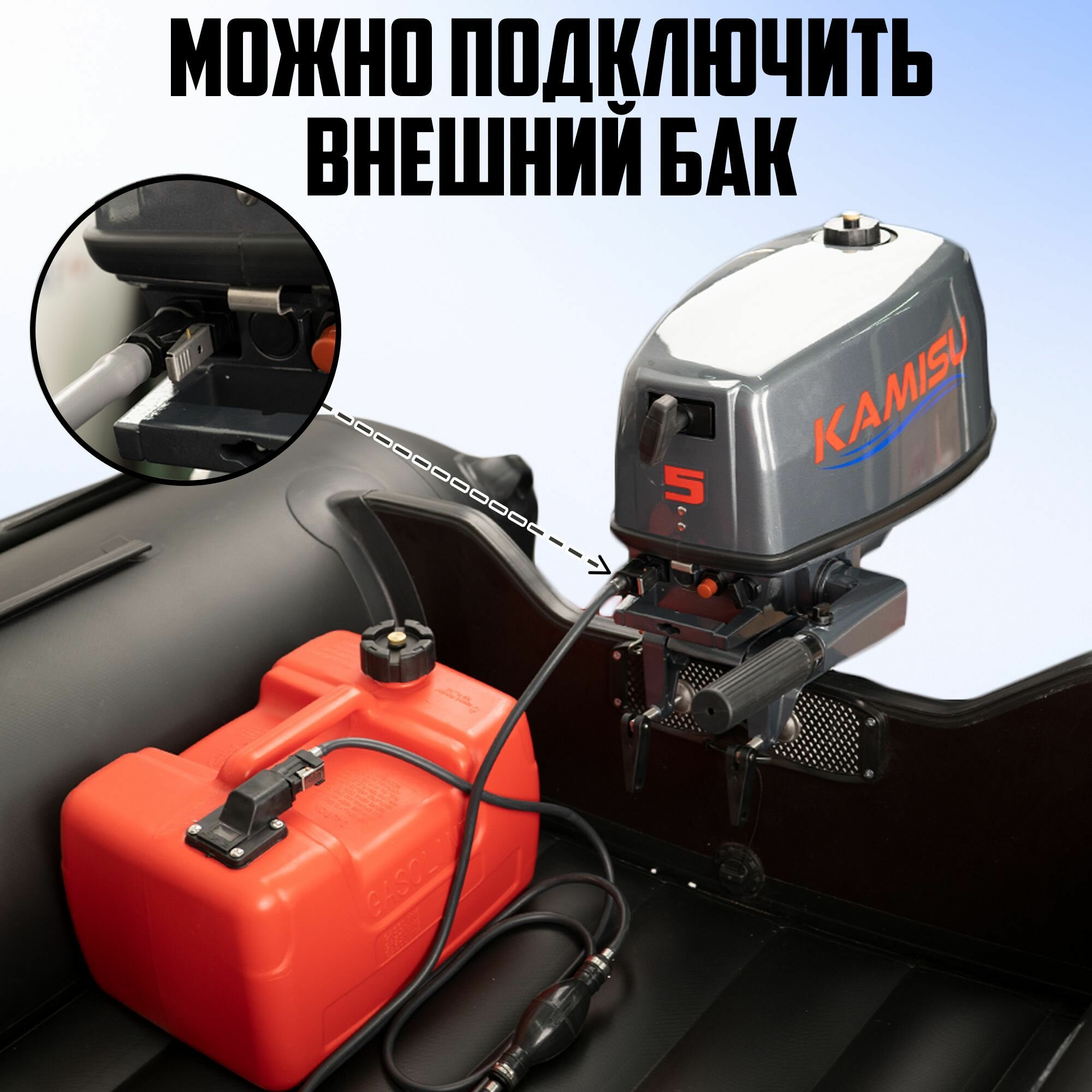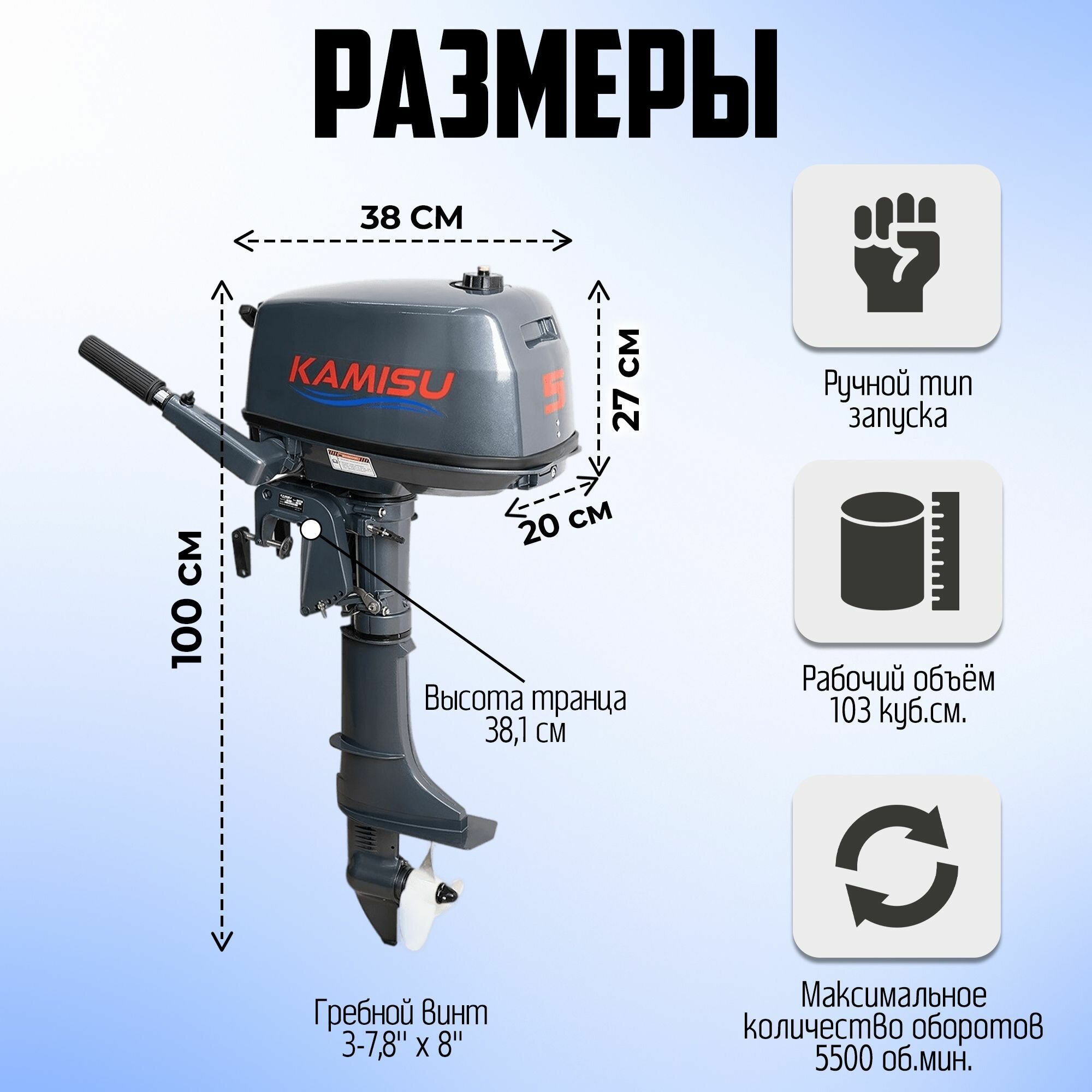 Лодочный мотор KAMISU T5BMS, бензиновый, 5 л.с., 103 куб.см, 2 тактный, 3,7 кВт интересное: