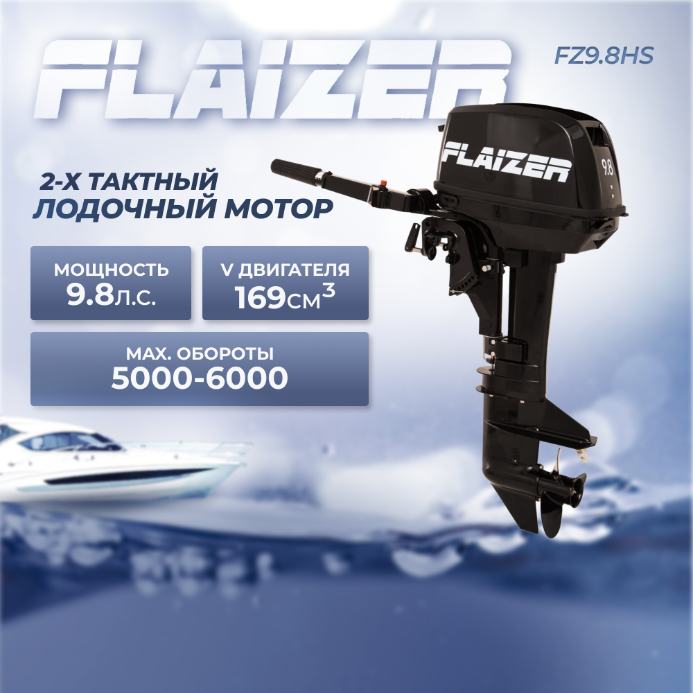 Купить Лодочный мотор бензиновый двухтактный Flaizer FZ9,8HS 9.8 л. с. подвесной для надувной гребной лодки ПВХ