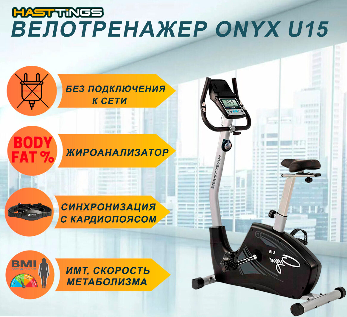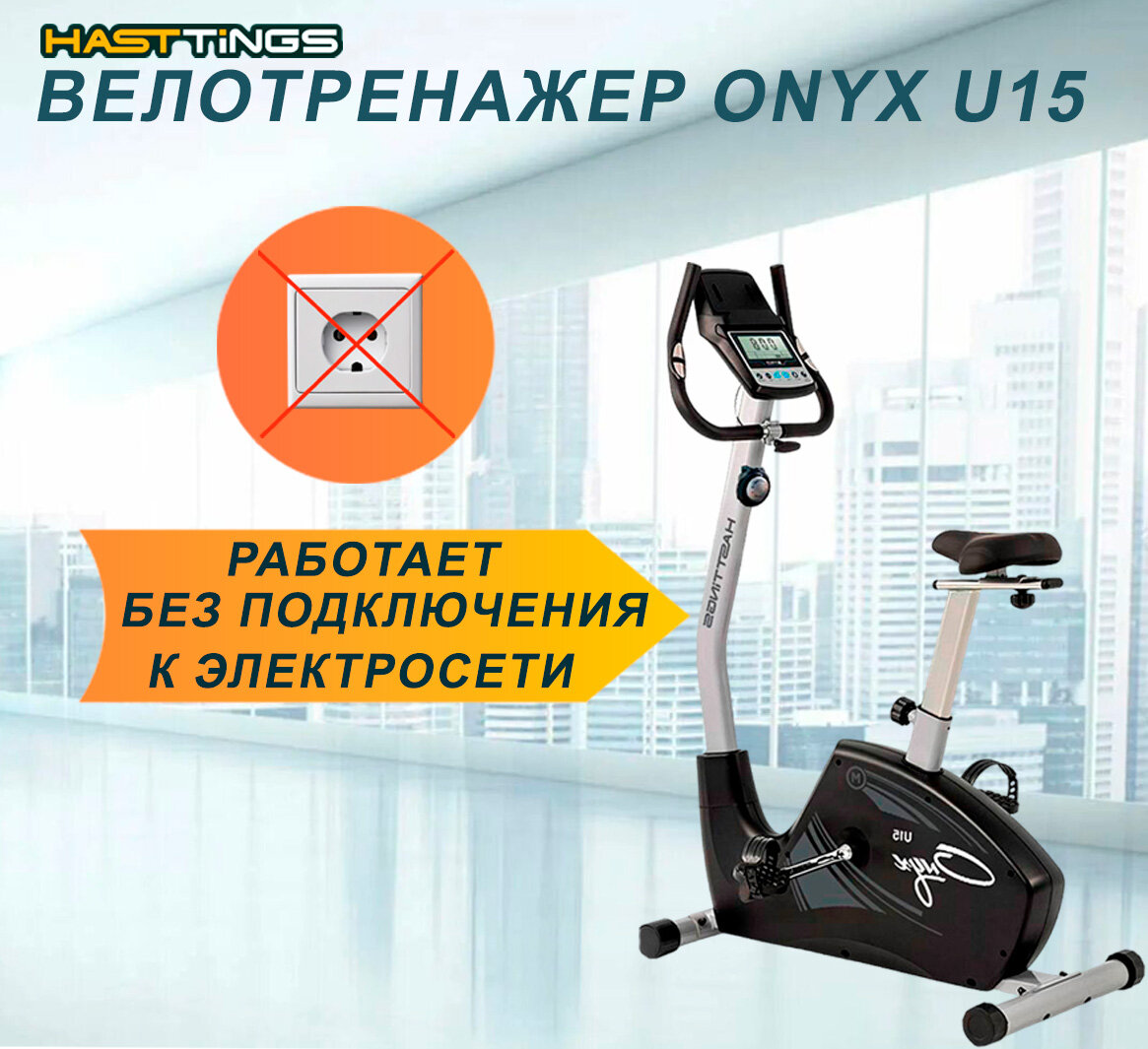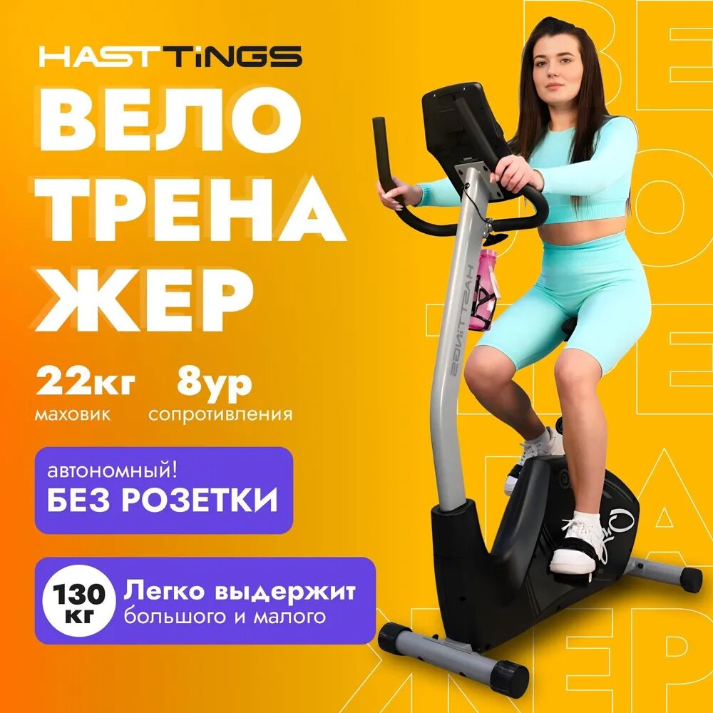 Велотренажер Hasttings U15 ONYX - до 130 кг/без подключения к сети/жироанализатор/8 уровней сопротивления/до 500 ккал за 1 ч