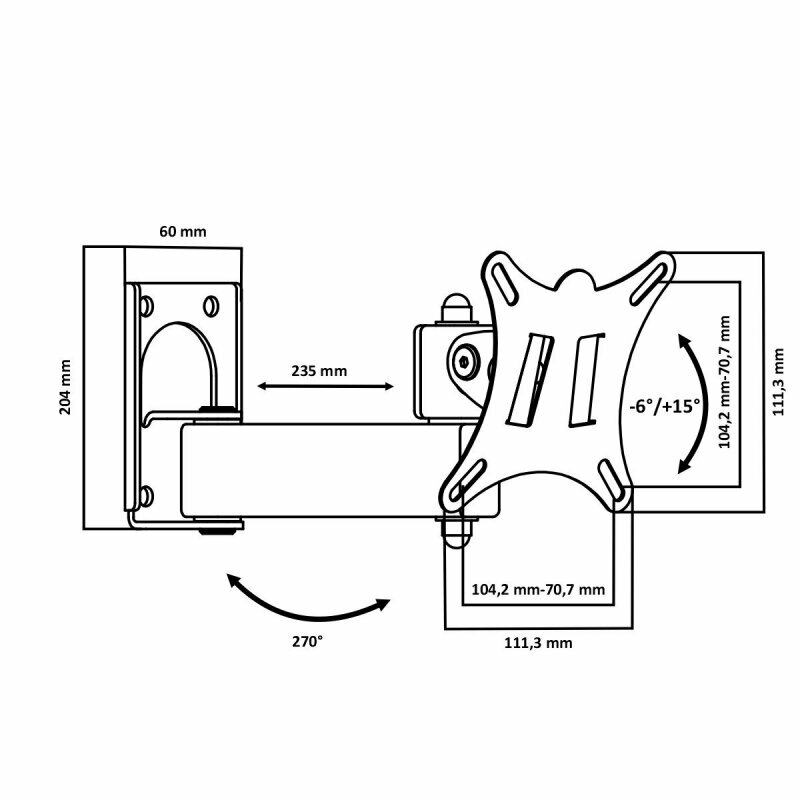 Кронштейн LE'STER LST-101.04 для LCD телевизора от 10" до 32", наклонно-поворотный, нагрузка:20 кг, VESA: 75x75, 100x100, 100x75, 75x100