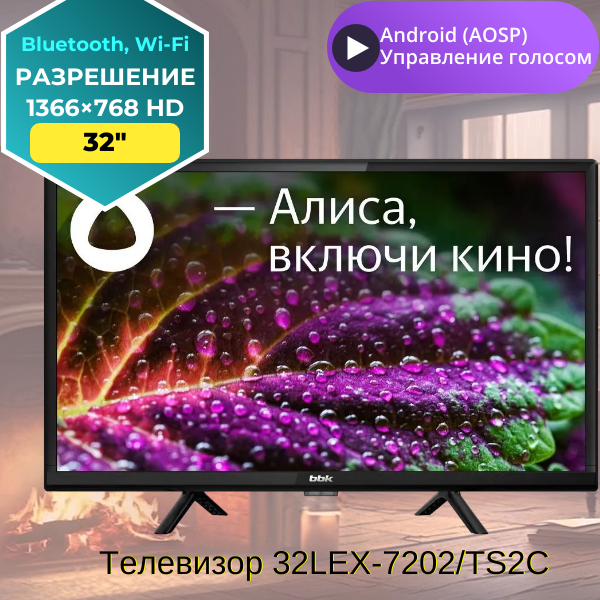 Телевизор BBK 32LEX-7202/TS2C, HD Ready, смарт (Яндекс ТВ)
